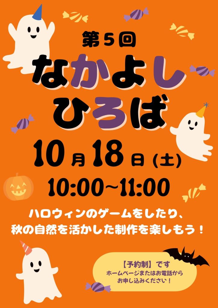 2025.10.15お知らせ 10月18日(土)に、未就園児対象の園開放“なかよしひろば”があります。ハロウィンにちなんだ遊びをしたり、秋の自然物を使った制作をしたり!楽しいコーナーを準備して皆さんをお待ちしています♪