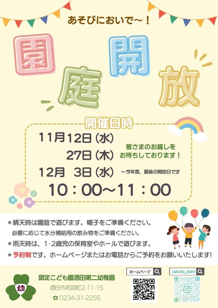 今年度の園庭開放は12月3日(水)で終了ですので、興味のある方はぜひ遊びに来てくださいね♪