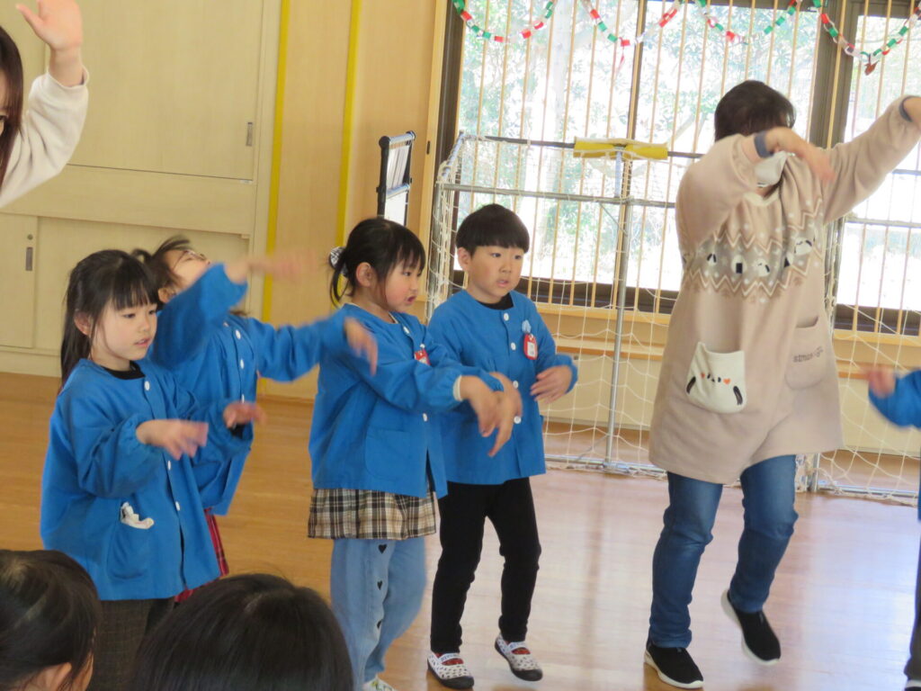 また、ジングルベルとお正月のゆうぎも全園児と全職員が輪になっておどり、楽しみました